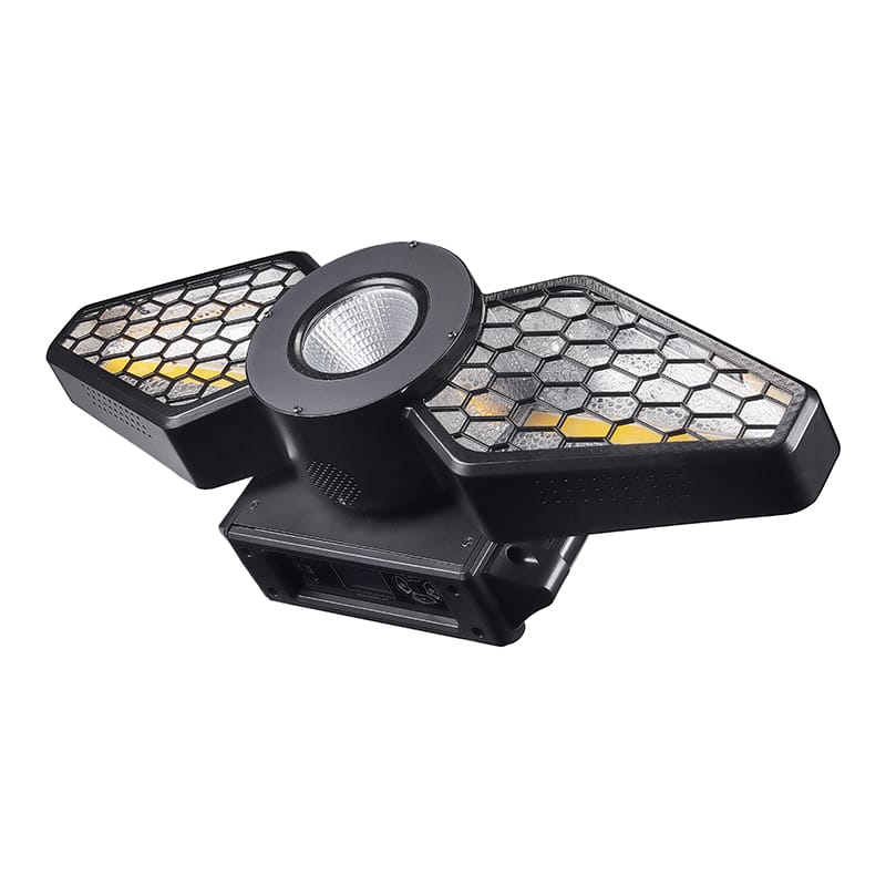 Strobo Potente e Ajustável: O flash LED central COB garante um efeito strobo super brilhante, que congela o movimento e eleva a energia da pista. "Asas" de Cores Vibrantes: As "duas folhas" laterais, permitem criar backlights (luz de fundo) com cores ricas, efeitos de wash (banho de luz) e perseguições de pixel (chases dinâmicos), adicionando profundidade e movimento ao seu cenário.